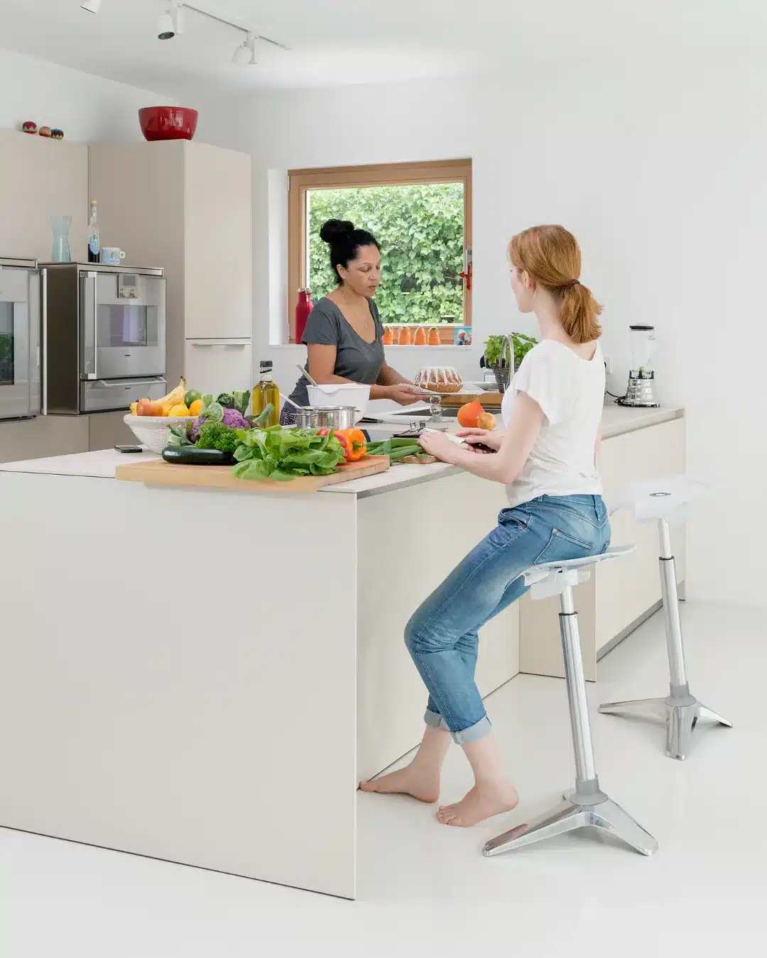 Der ONGO Stand passt sich jeder Bewegung an. Damit ist der Stand perfekt für Menschen, die im Stehen arbeiten wollen oder müssen.